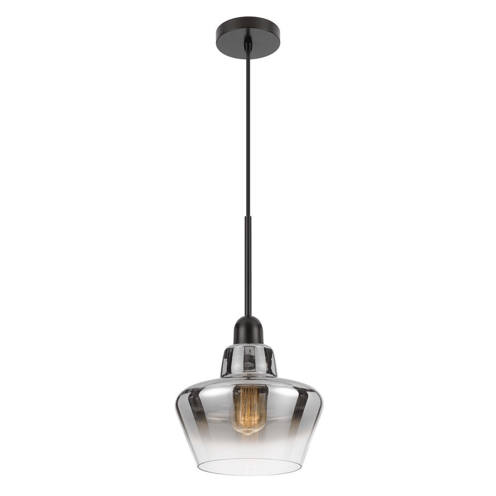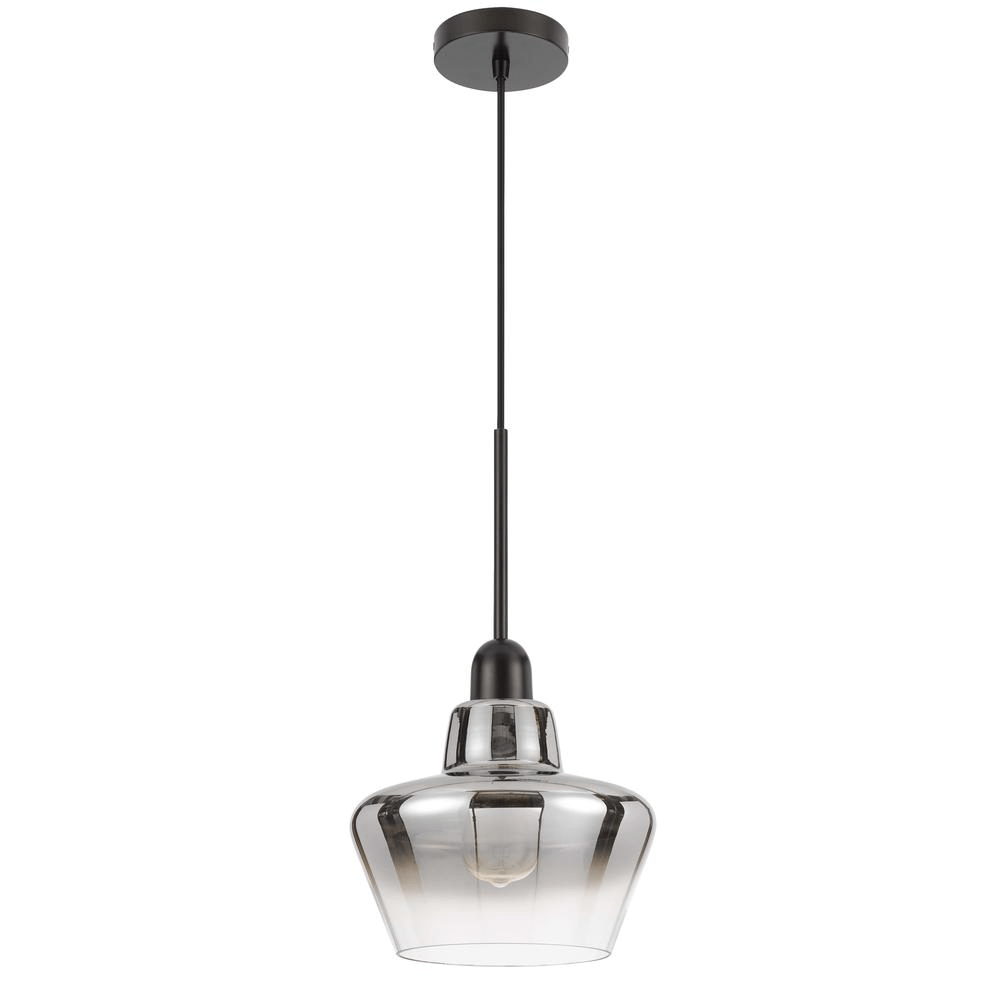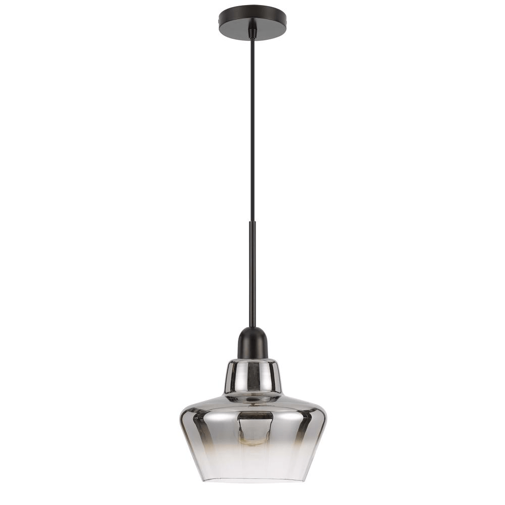 Add a touch of sparkle with this silver hand blown smoked glass pendant light. It features a shiny electroplated finish on a wine cup glass shade design. The fixture comes with matching sating black canopy and six feet of chain.