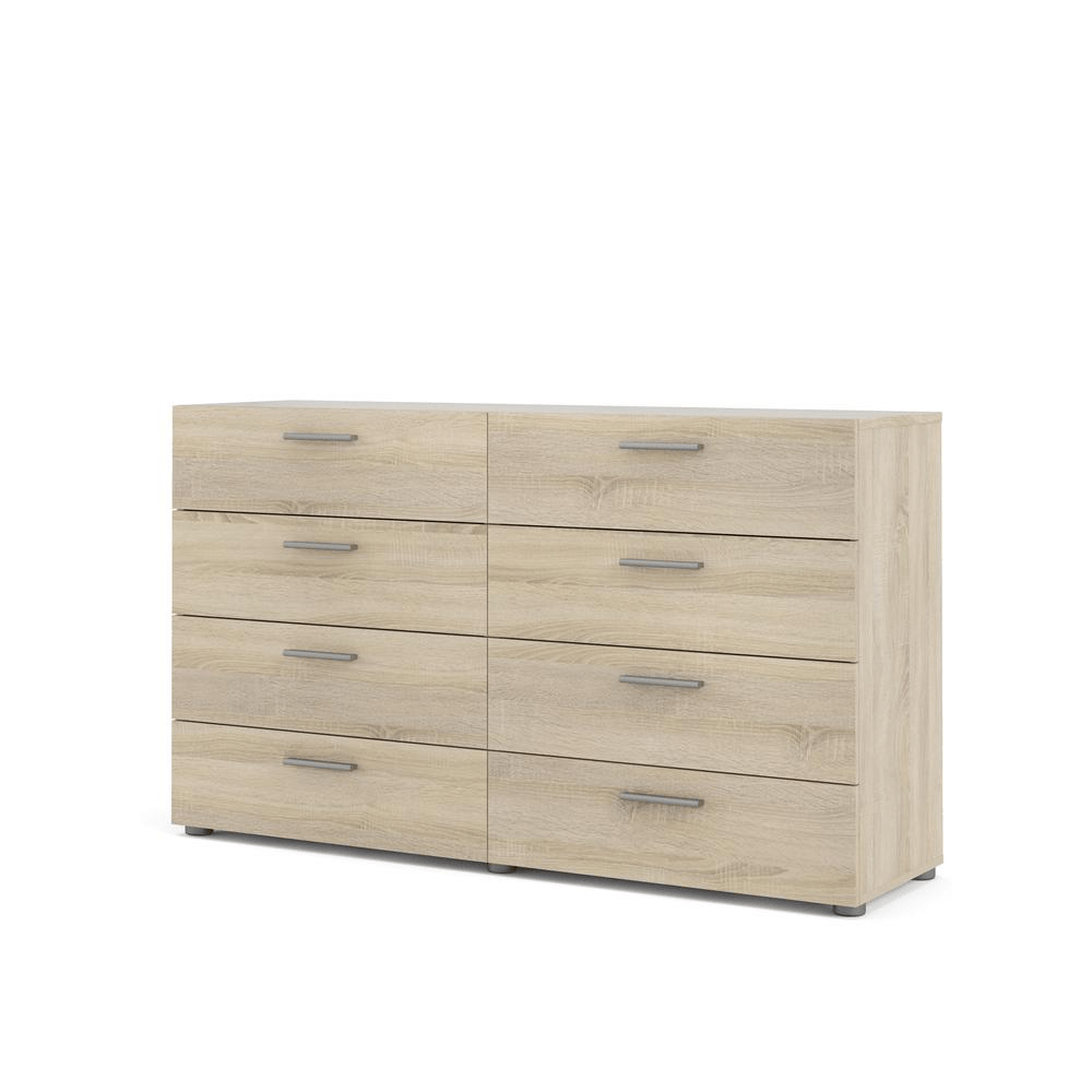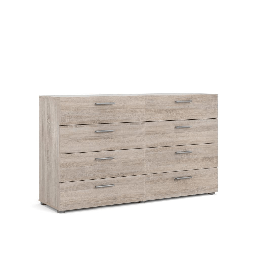 Keep it clean. Austin 8 Drawer Double Dresser can organize your clothing without overbearing your room. With 8 wide drawers, sweaters and linens find a happy home here. Unique dresser depth makes this ideal for smaller spaces or high traffic areas in bedrooms. Streamlined hardware and round feet give it a simple chic feel. Standing strong with metal drawer glides and an easy to clean foil surface the Austin dresser will be a productive and durable piece in your collection. Pair this Austin 8 Drawer Double Dresser with other items from the Austin collection to complete the look.
