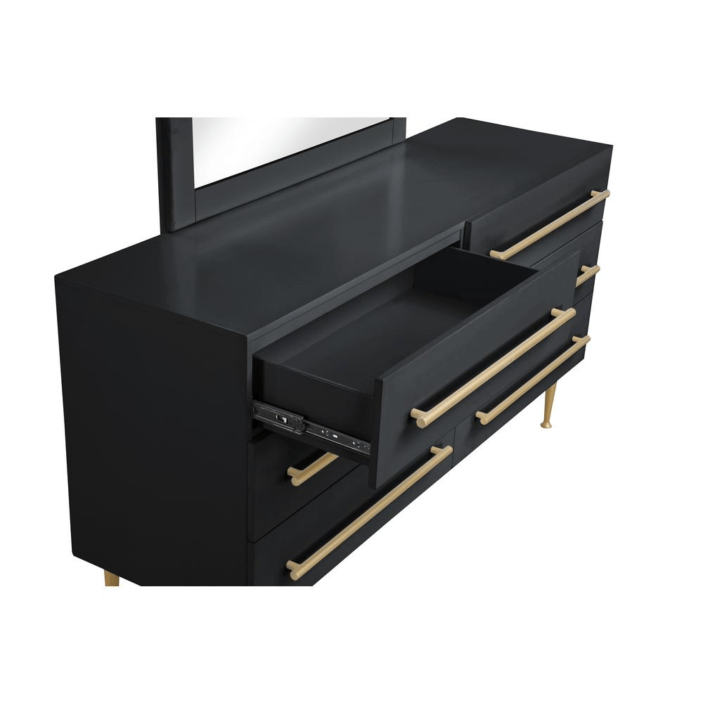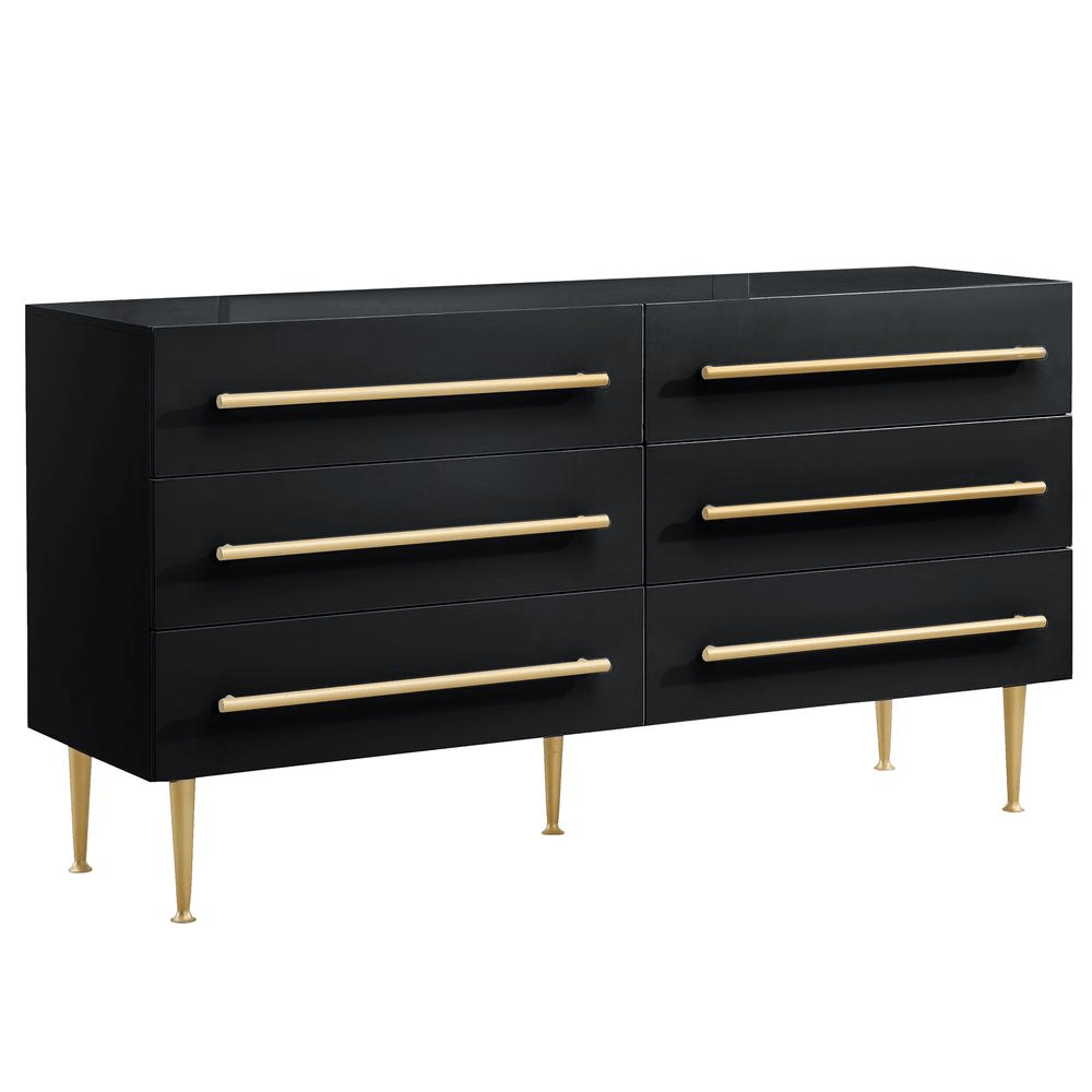 Part of Bellanova collection, this dresser will give your bedroom that modern touch. The dresser features 6 drawers with a soft close mechanism for ample storage space as well as a quiet close function. Dresser has gold legs and accents to give this an entire new look.