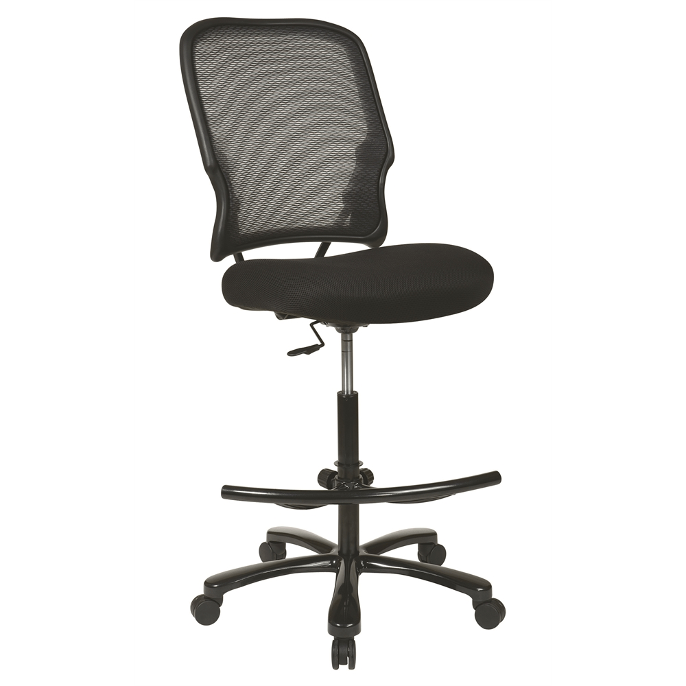 Double AirGrid® Back Drafting Chair with Black Mesh Seat, Adjustable Footring, Gunmetal finish base. Pneumatic Seat height adjustment Big Mans Drafting Chair without Arms, hold up to 325 lbs. Optional A27WA Arms available.