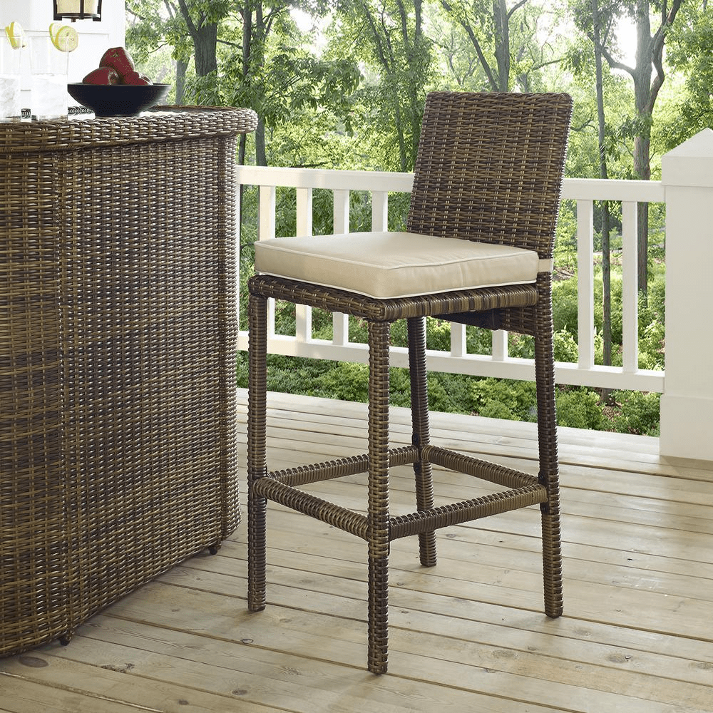 Bradenton 2Pc Outdoor Wicker Bar Height Bar Stool Set Sand/Weathered Brown - 2 Bar Stools