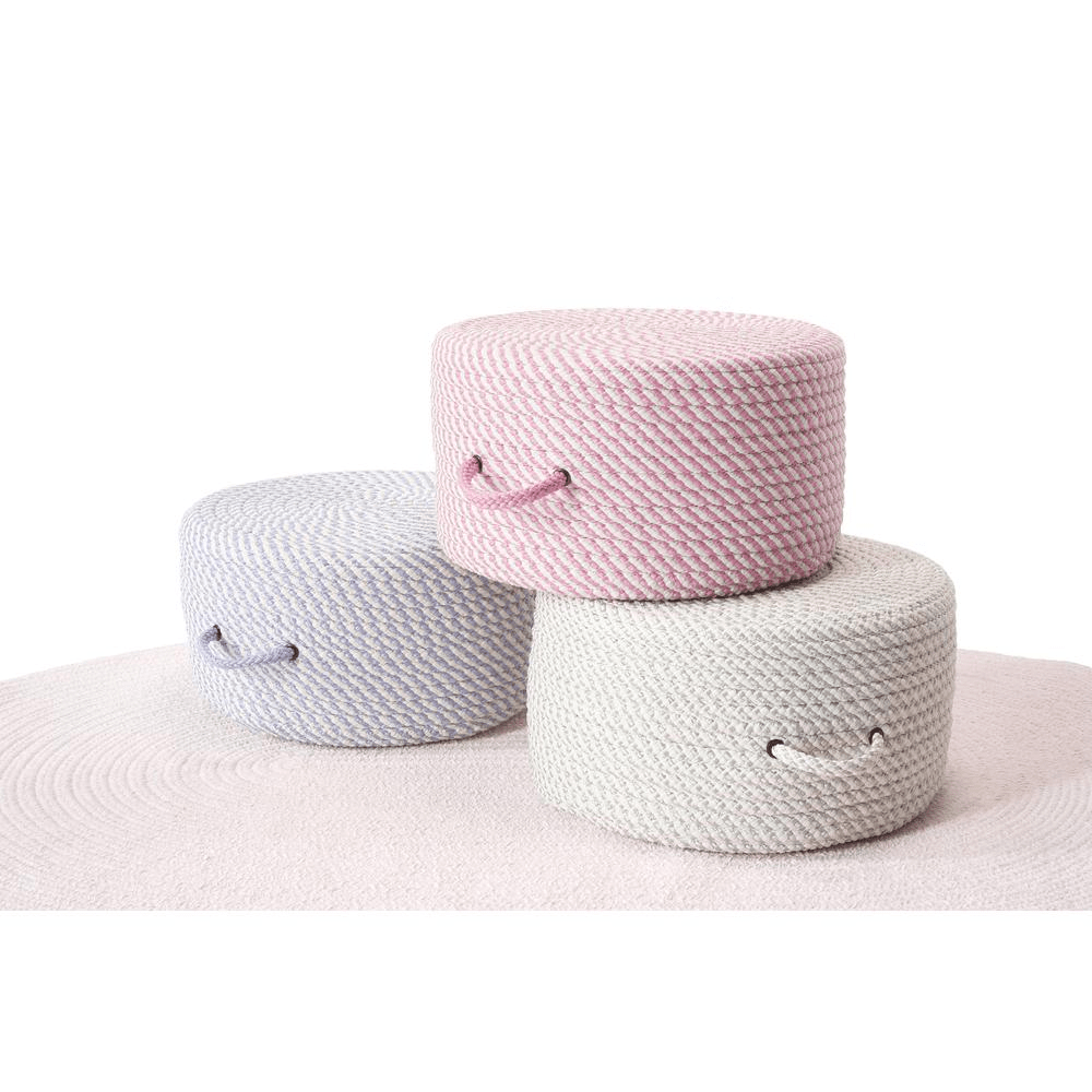 Bright colors in a playful twisted design make this pouf the perfect accent to any kids space. Stain resistant. Made in the USA.