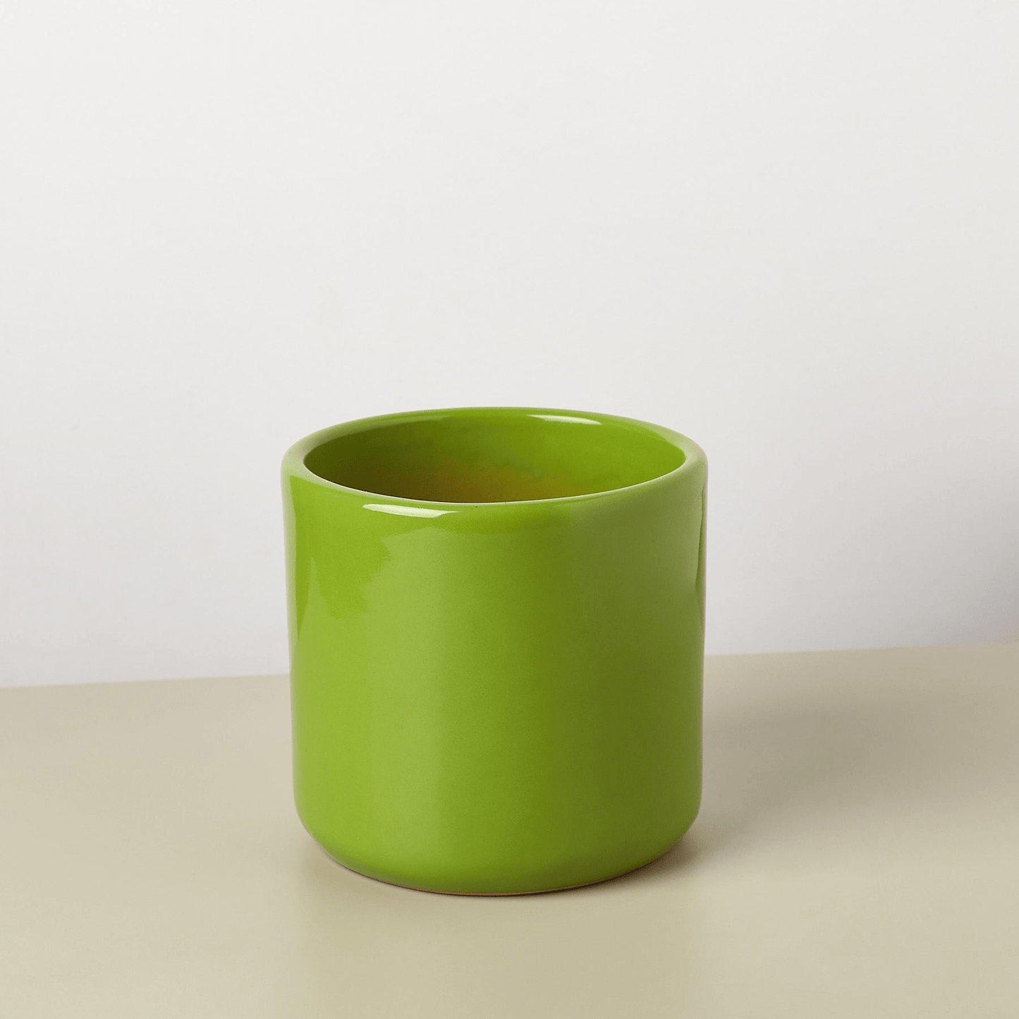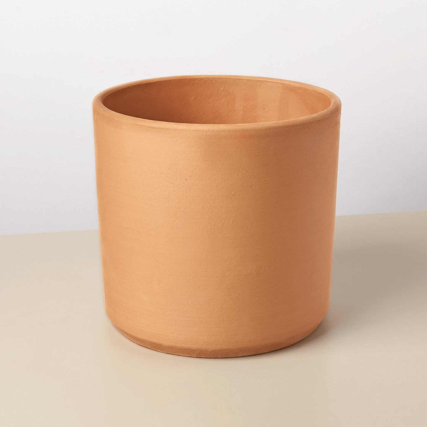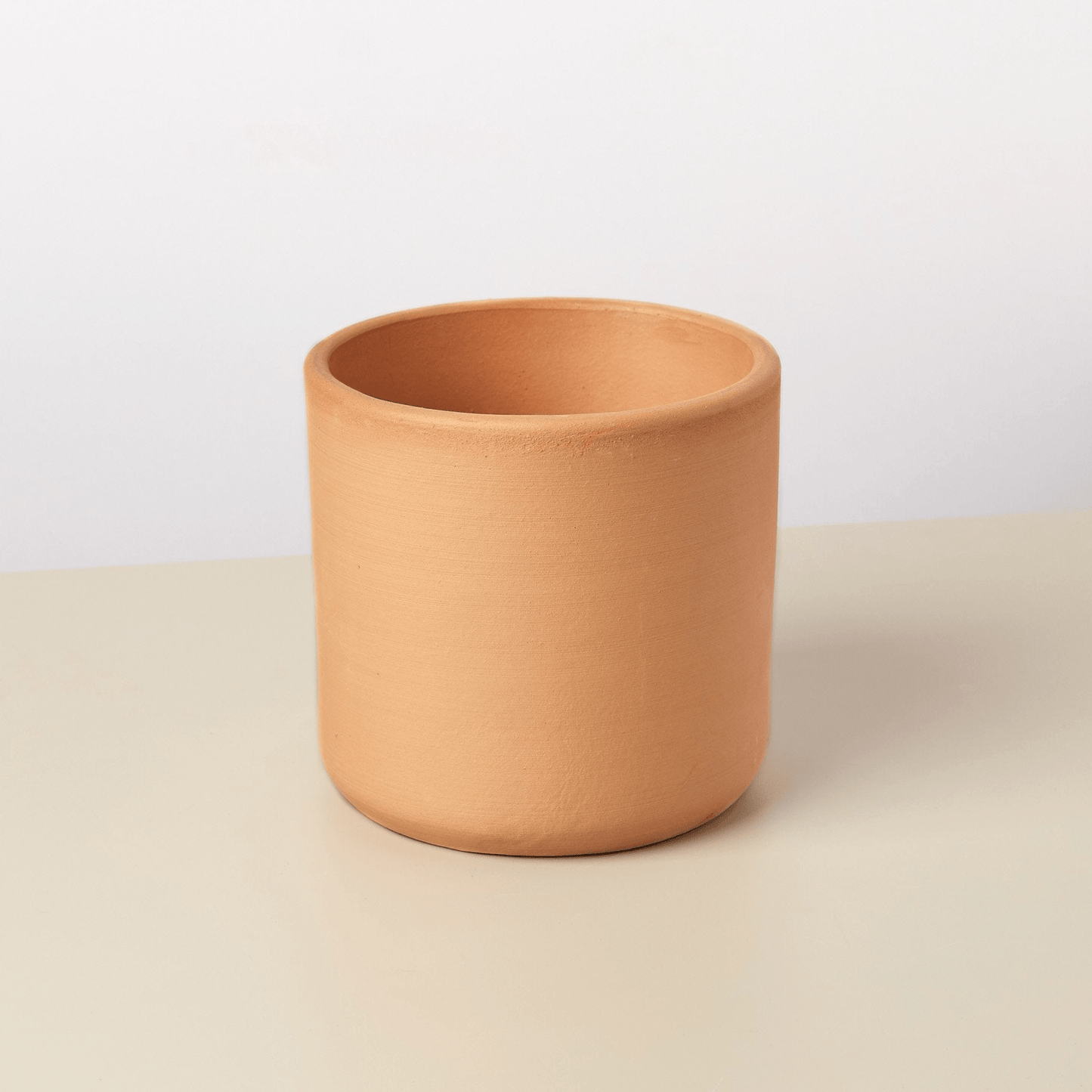 Ceramic and Terra Cotta Cylinder Pots that are 6" Inches in diameter and 6.25" Inches tall. Works well for 4" plants to allow for growth.