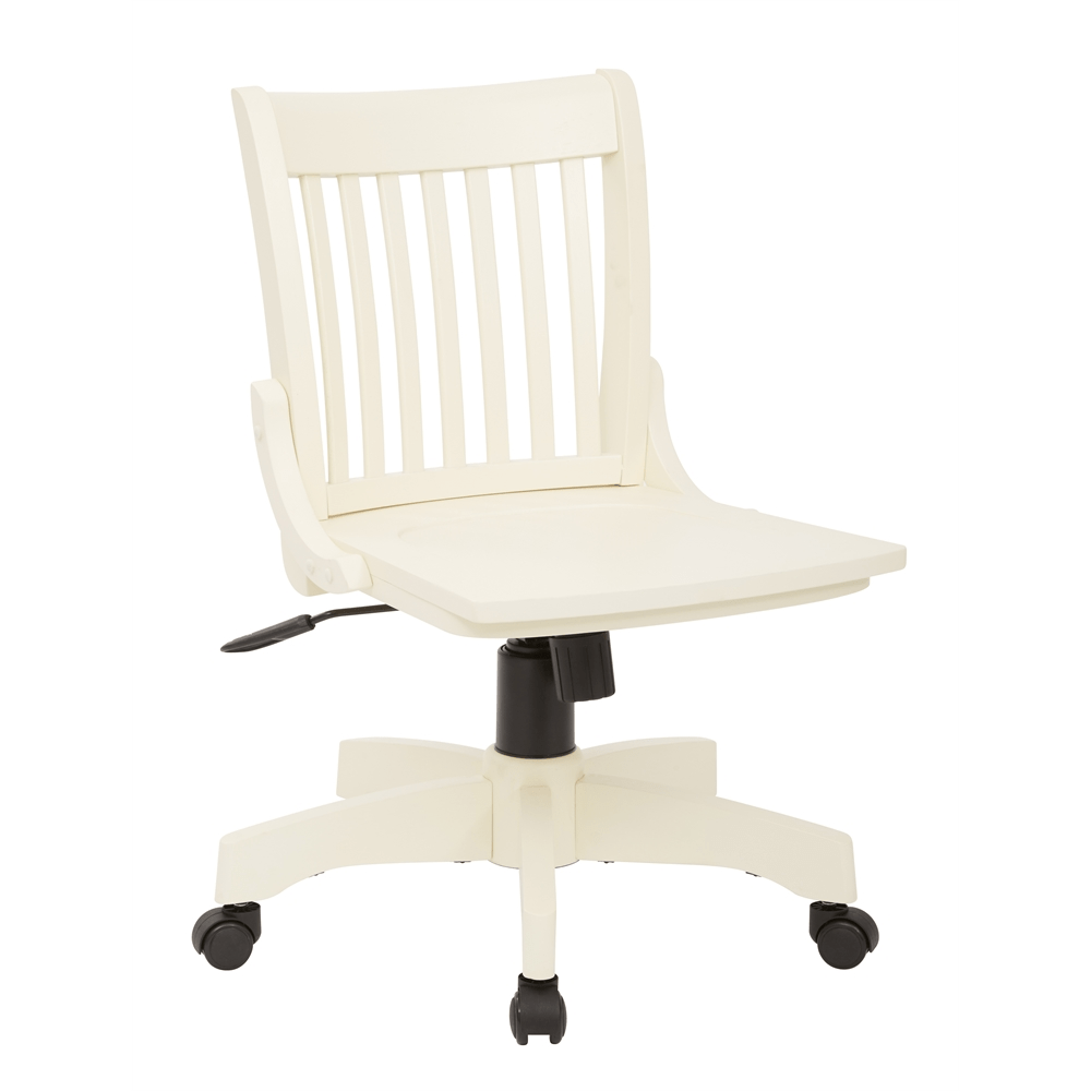 Deluxe Armless Wood Bankers Chair with Wood Seat in Antique White Finish