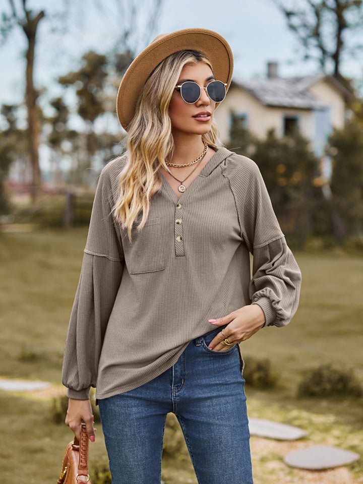 Elevate your casual wardrobe with this dropped-shoulder buttoned hoodie. The relaxed fit and button detailing add a touch of sophistication, making it a versatile and stylish choice for cozy days or casual outings.
