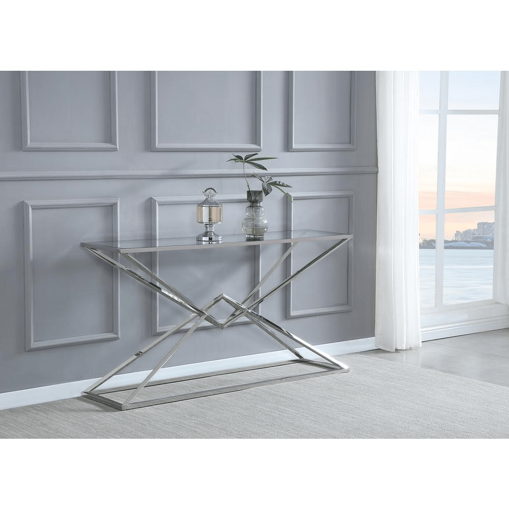 Bring this regal piece into your modern abode today. This console table features a stainless steel frame with a tempered glass top. The console table is available in 2-finished - Gold or Silver. Matching coffee table is also available to complete the set.