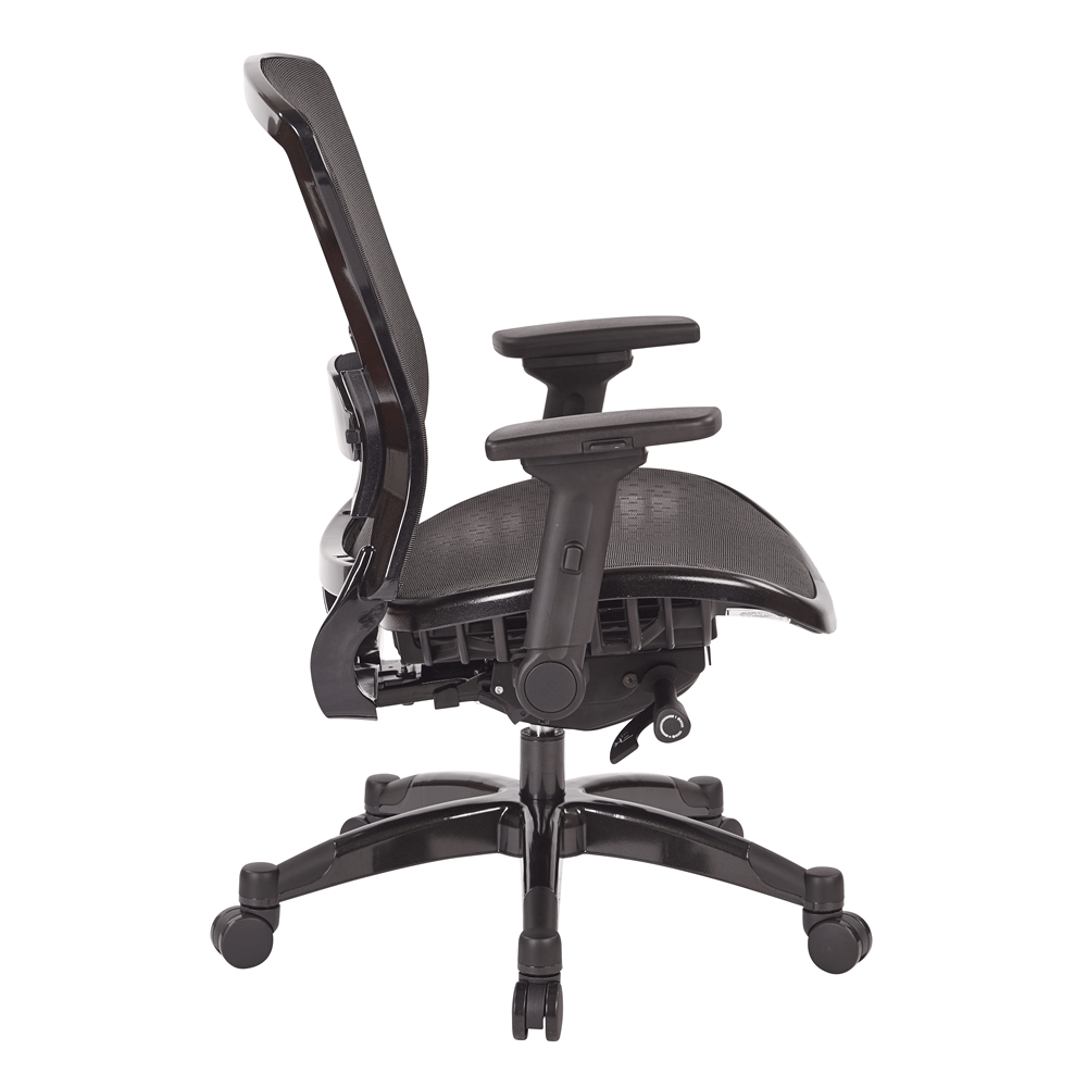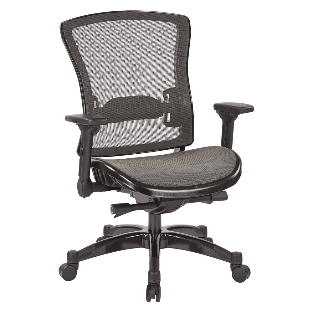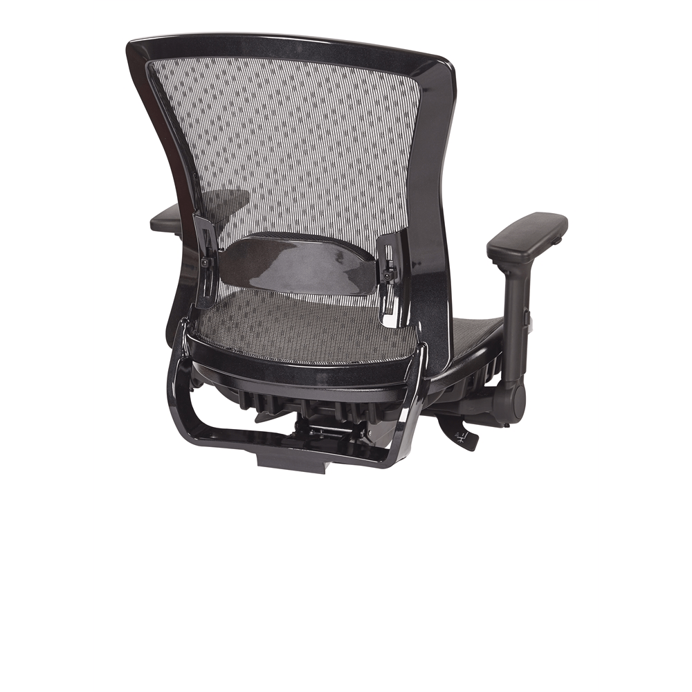 Executive Breathable Mesh Back Chair with Silver Finish Flip Arms, Lumbar Support, Deluxe Knee Synchro with Seat Slider, Soft PU Pads, Heavy Duty Siler Coated Nylon Finish Base with Dual Wheel Carpet Casters.
