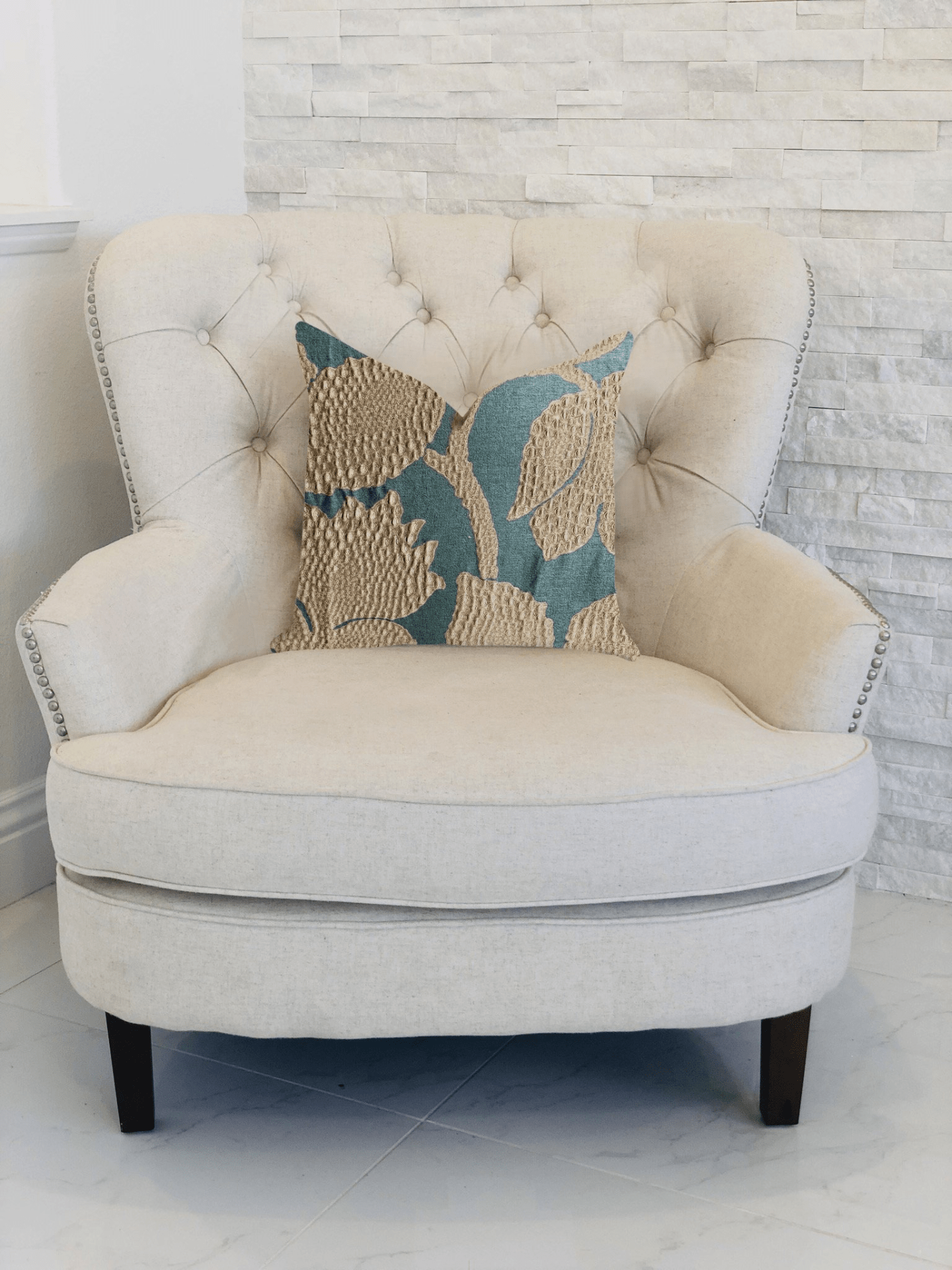 Embellish your couch with this beautiful striking accent golden arabella vine in green and gold luxury throw pillow . The fabric of this trendy pillow is a blend of Viscose, Acrylic, and Polyester.