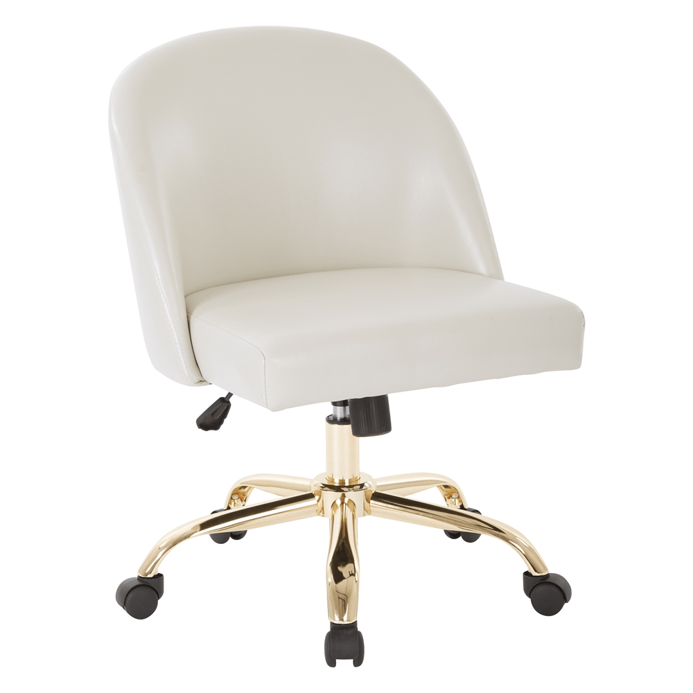 Mid Back Office Chair in Cream PU with Gold Finish Base