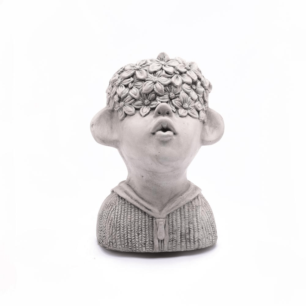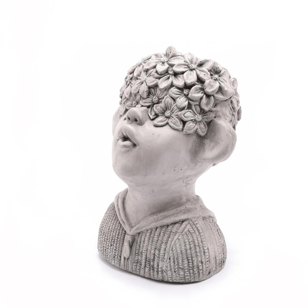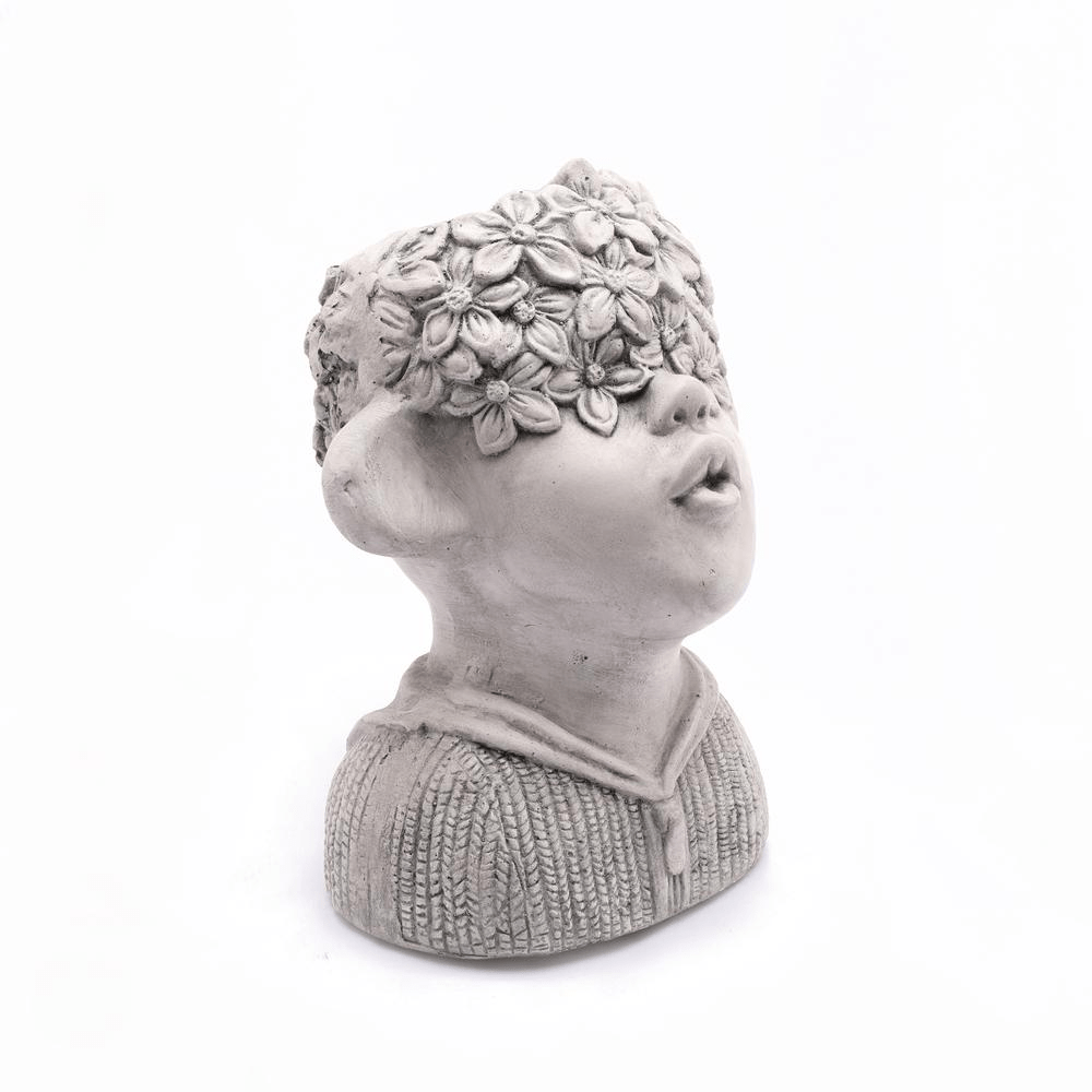 LuxenHome Gray MgO Kissing Flower Child Bust Planter