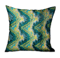 This fashion forward pillow design features unique handcrafted fabric, made from the finest materials to dazzle your eye and feed your senses. This memorable design will add warmth and sophistication to any living space.plutus montage haven green geometric luxury throw pillow. The fabric of this luxury pillow is a blend of Viscose, Linen, Lurex, Silk.