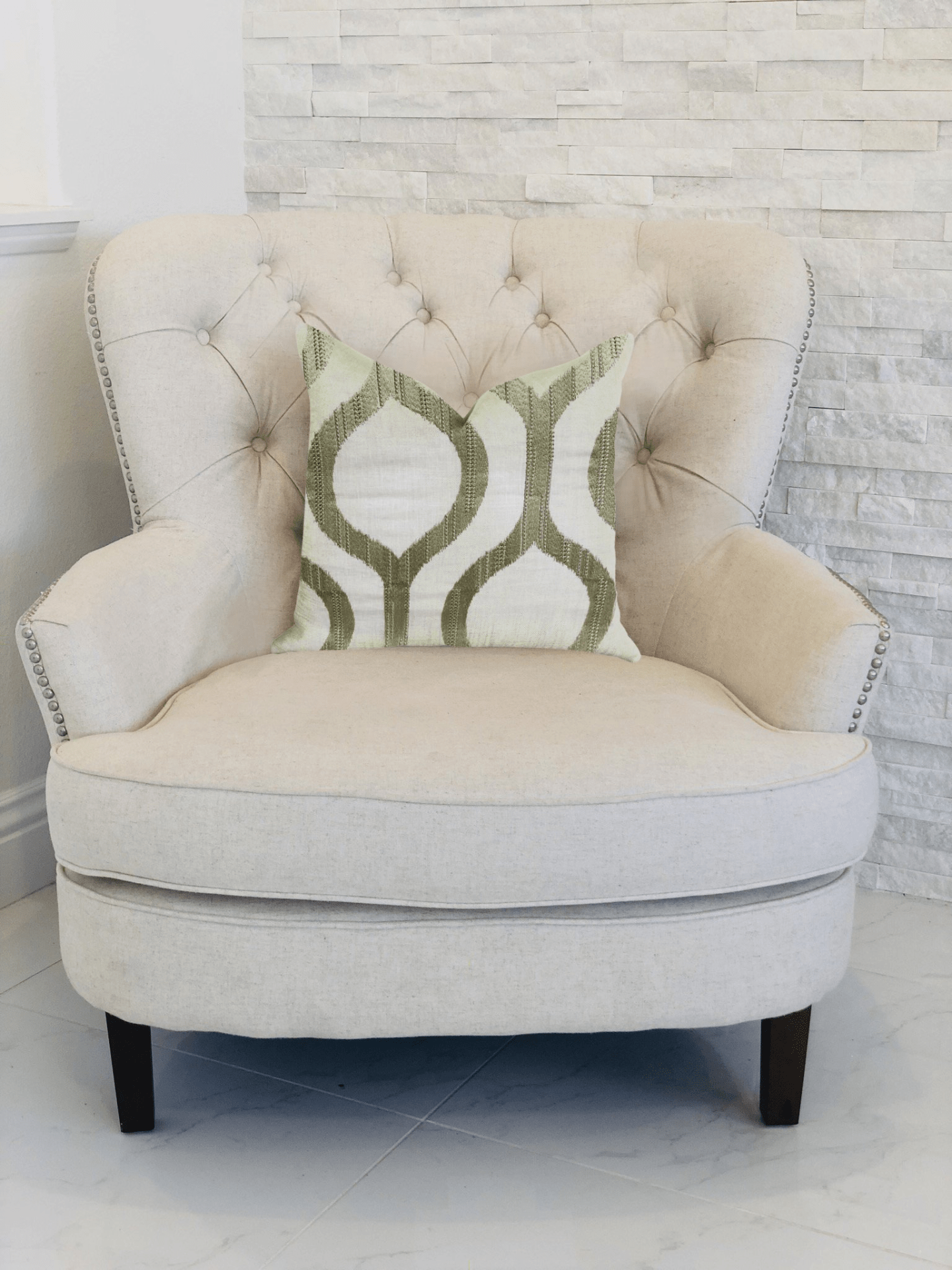 Ehance your home decor by adding a touch of elegance with this designer morrocan villa light grass luxury throw pillow. The fabric of this trendy pillow is a blend of Linen, Viscose, and Spun Poly.