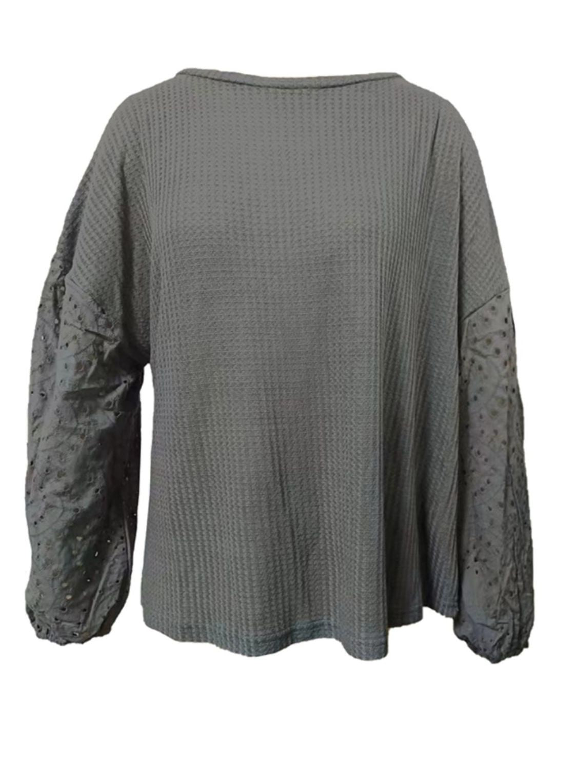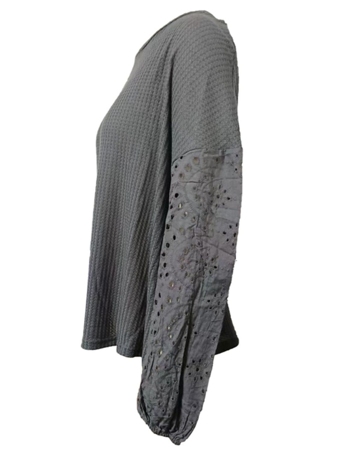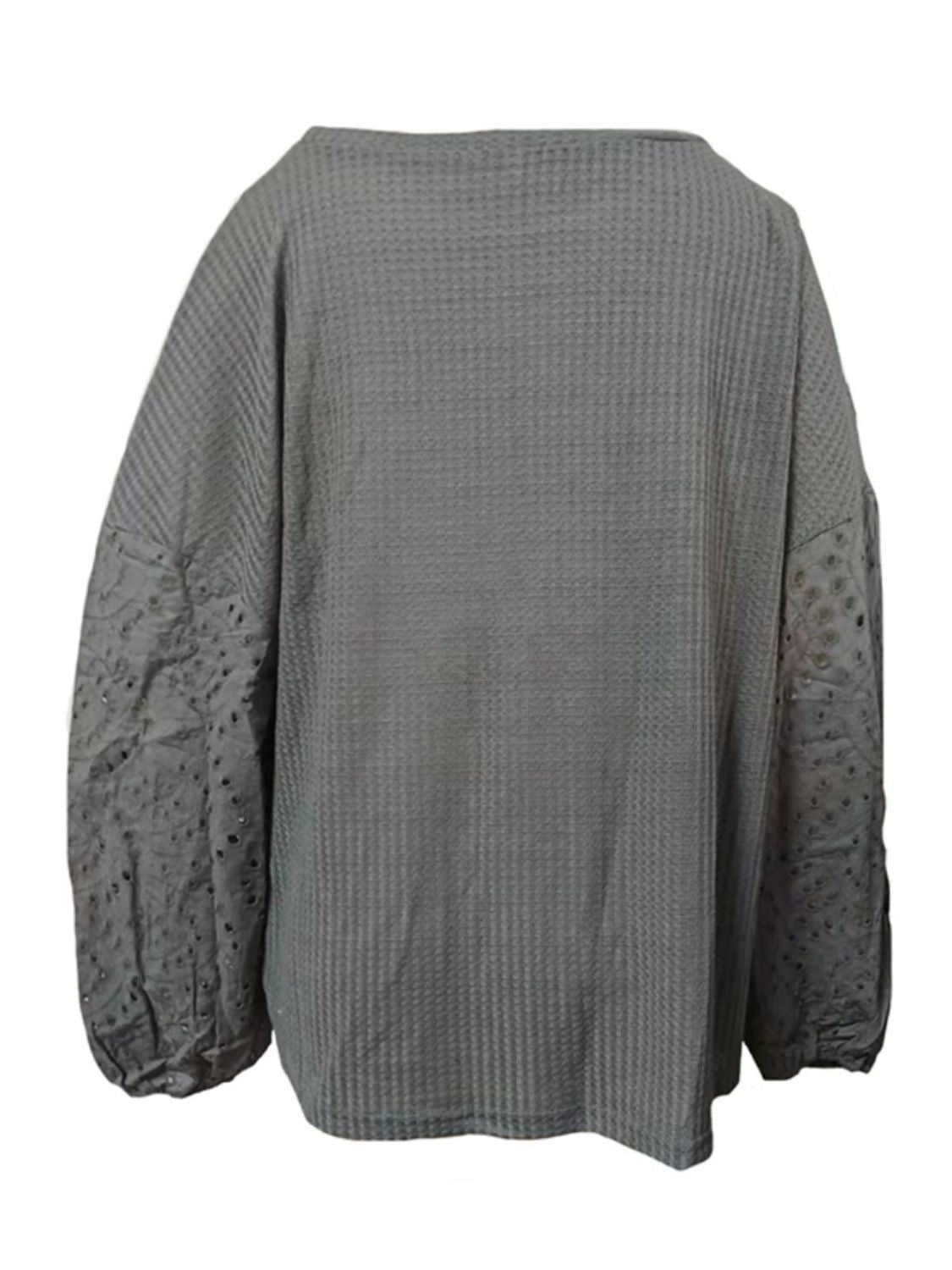 Openwork Dropped Shoulder Boat Neck Blouse