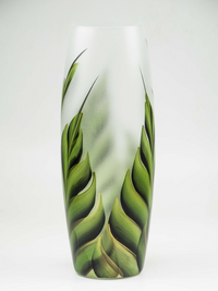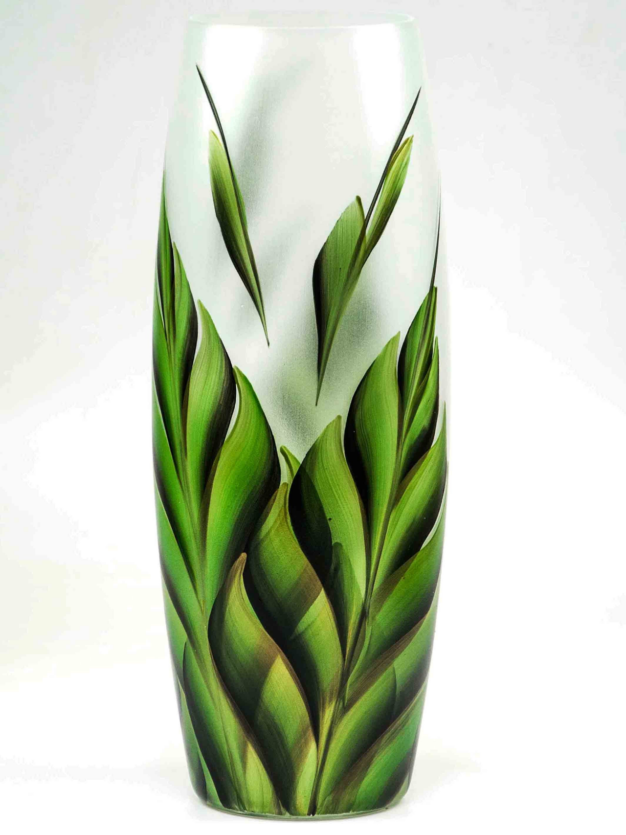 Tropical leaves | Ikebana Floor Vase | Large Handpainted Glass Vase for Flowers | Room Decor | Floor Vase 16 inch