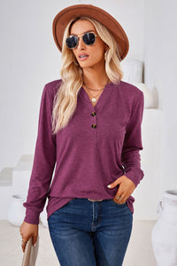 V-Neck Buttoned Long Sleeve Blouse